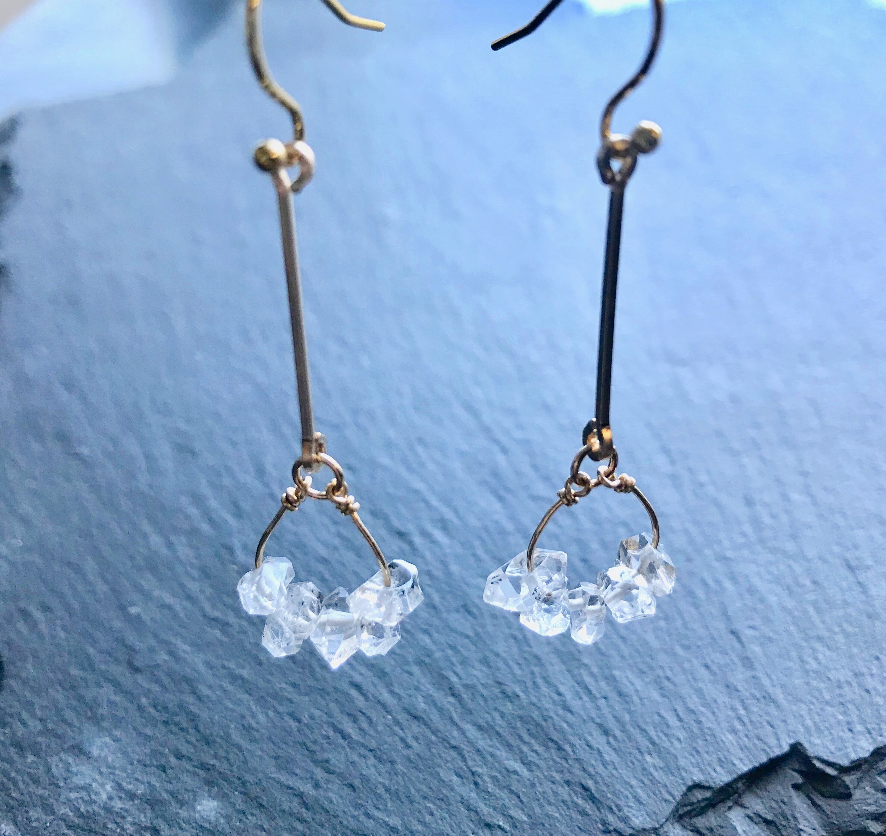 14kgf スクエアワイヤーにNY産ハーキマークオーツ をあしらった揺れる大人可愛いピアスです♪